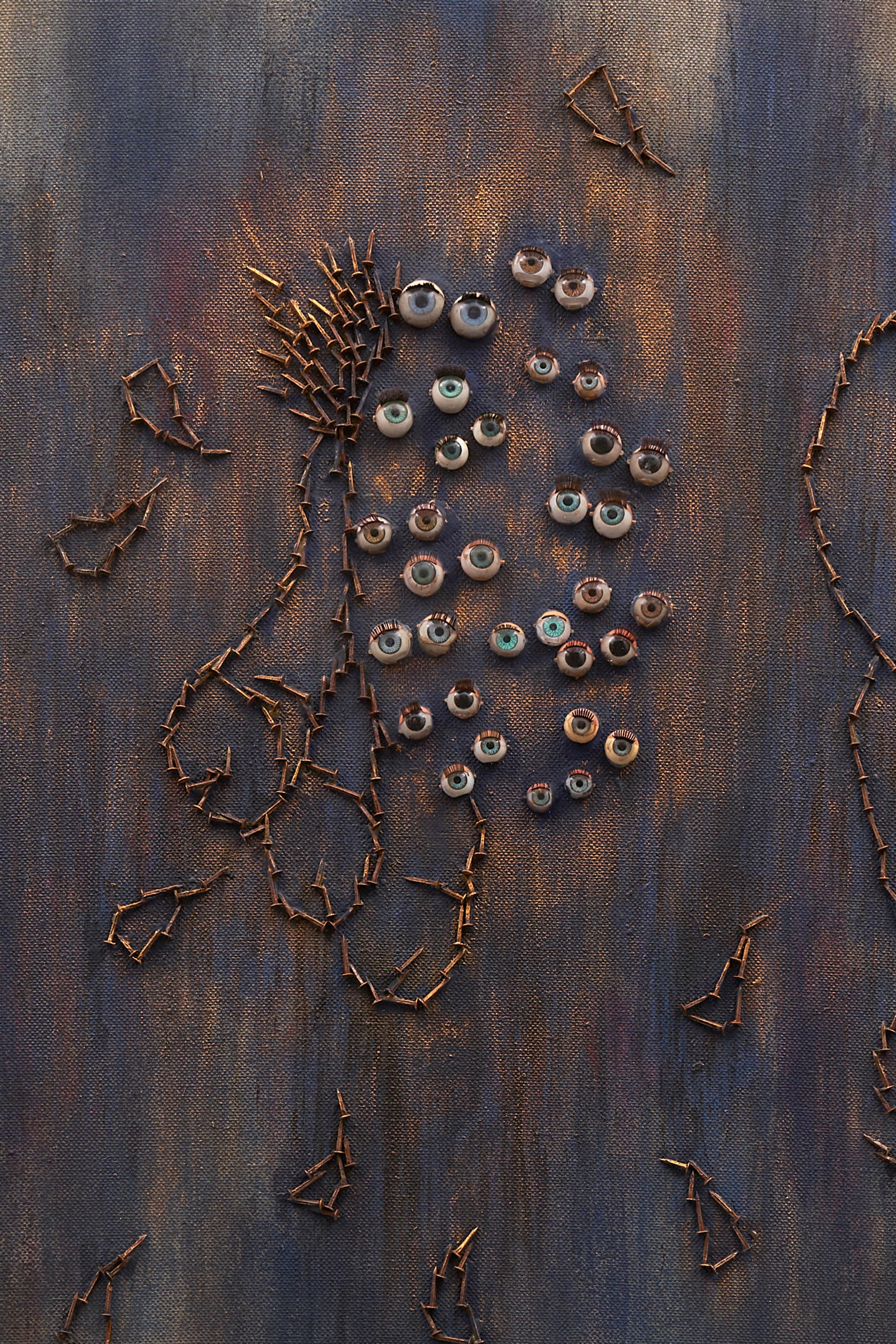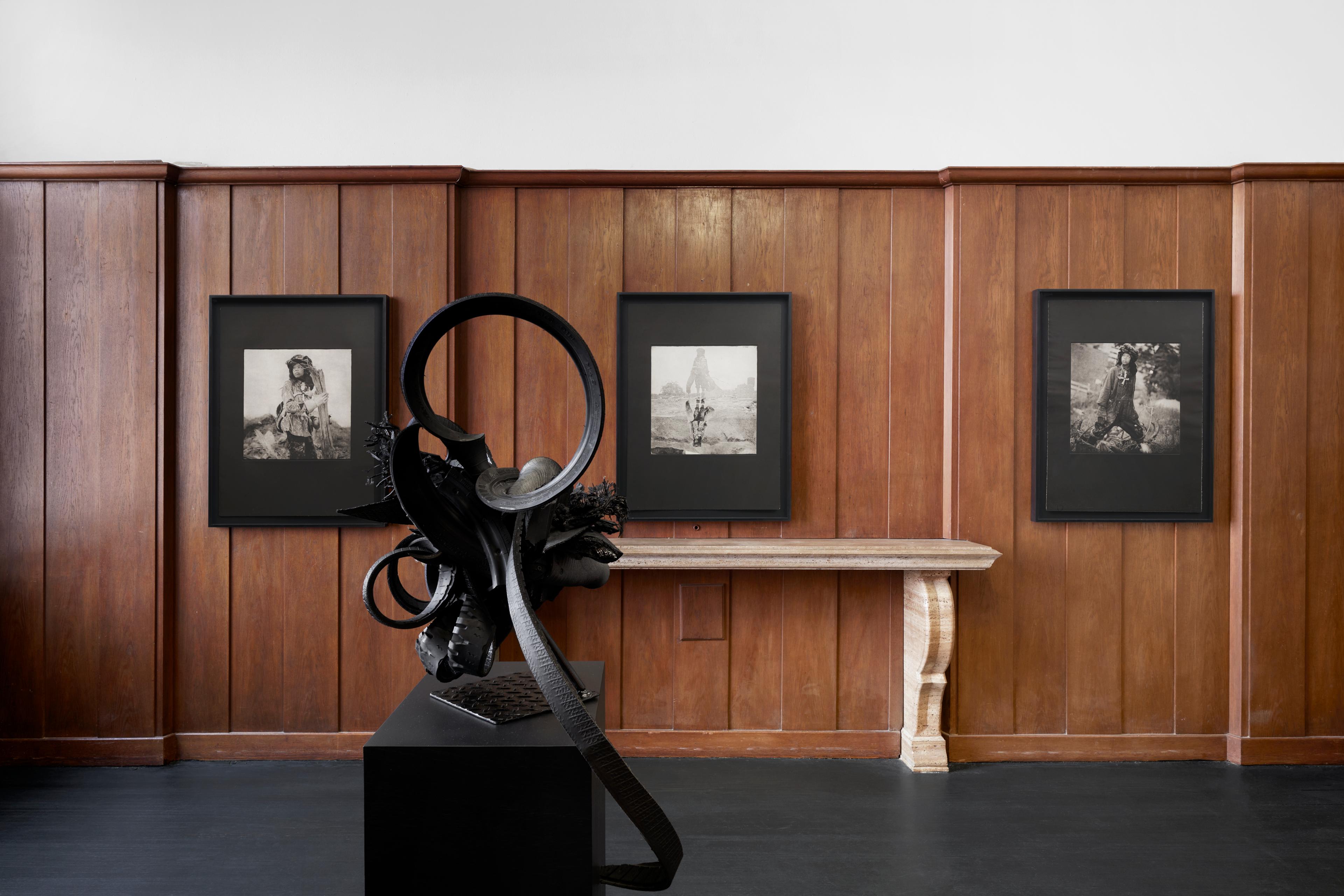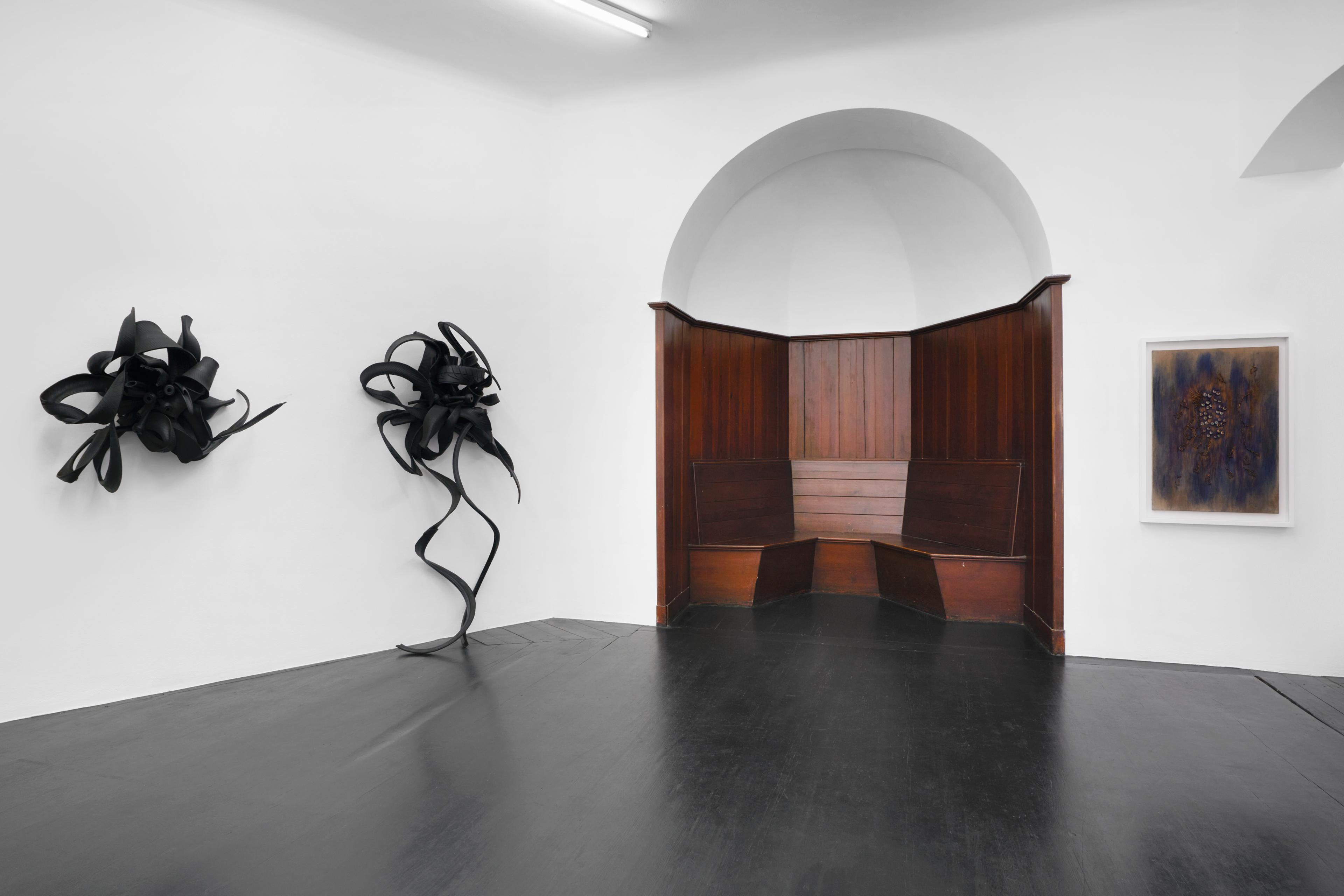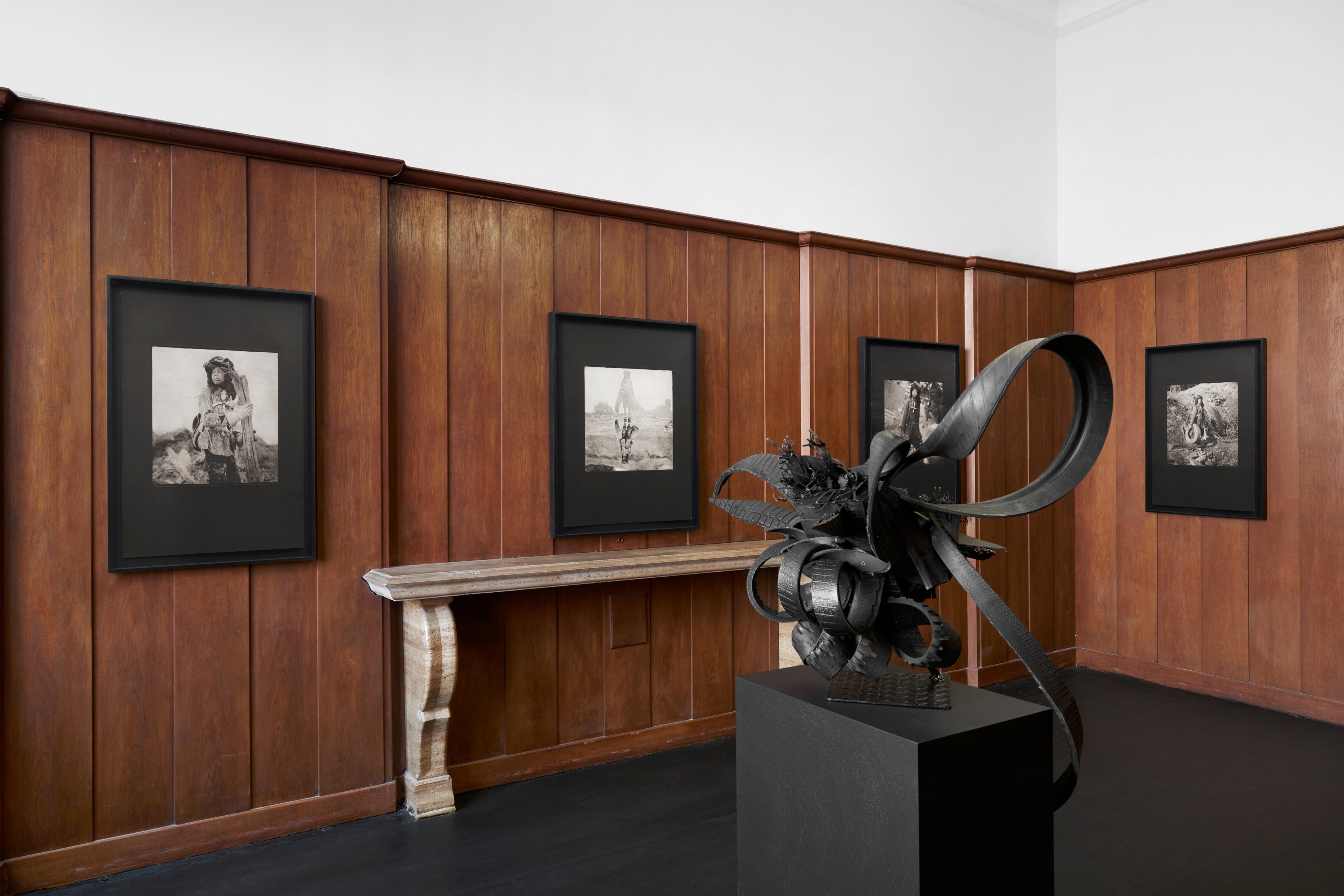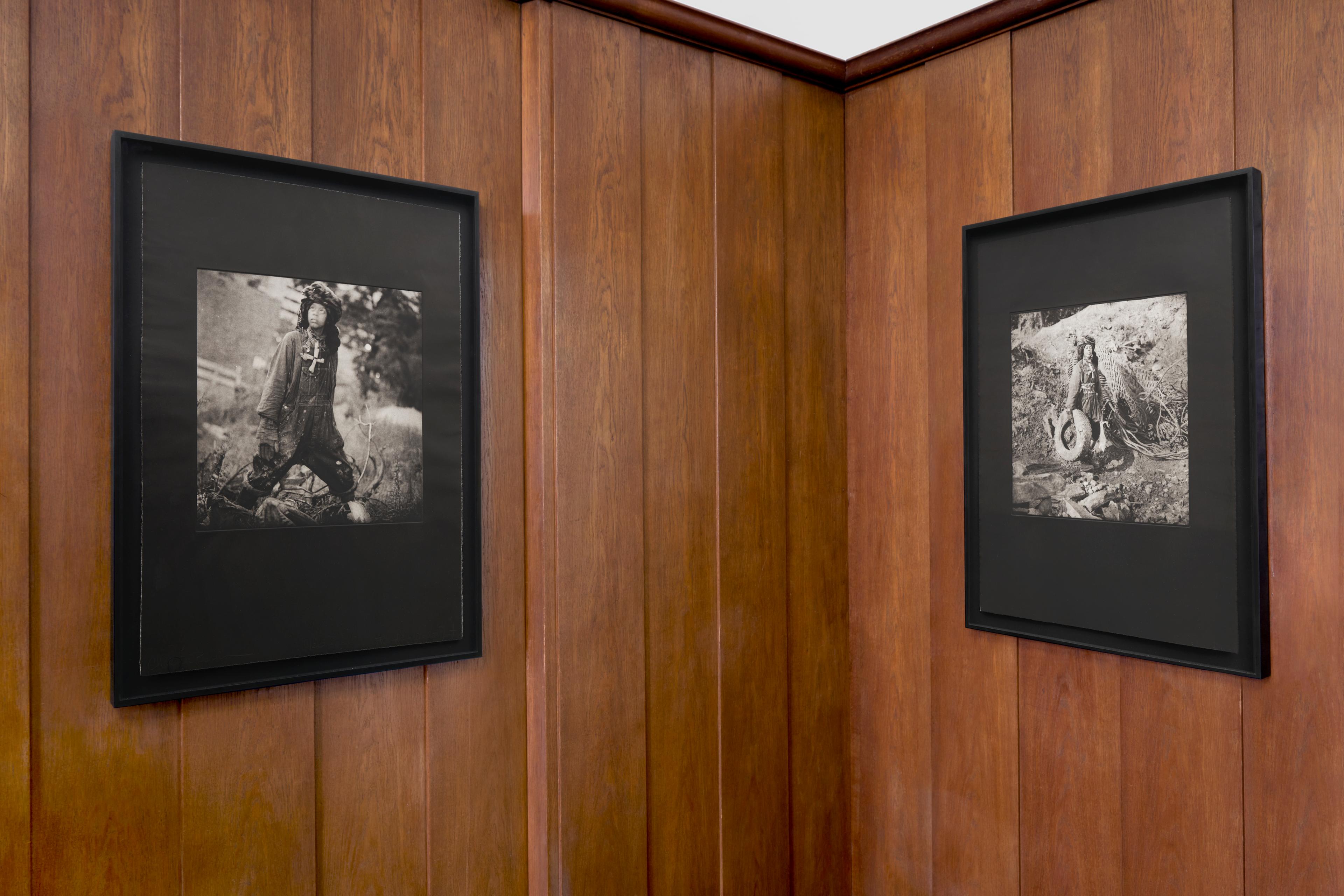 Sanguine (reddish-brown chalk) on paper, mounted on wooden board 2 framed panels, side by side